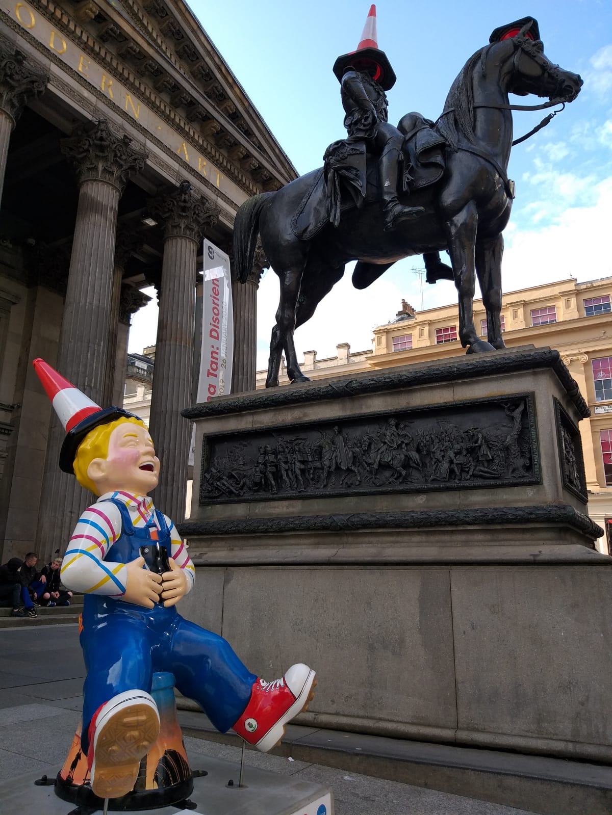 Cosa vedere e dove trovarlo: – La Pasionaria e Roman Catholic Metropolitan Cathedral (Clyde Street); – Portal Street Suspension Bridge; – St. Andrews in the Square (St. Andrews Street); – Tronglate Steeple, Merchant City Clock Tower e Preston Mercat Tower (tutti situati in Trongate); – Statue of William III of Scotland (High Street); – Cattedrale (in Cathedral Precinct);- Glasgow City Chambers (George Square); – St. George’s Tron Church of Scotland e Statua di Donald Dewar (Buchanan Street); – Gallery of Modern Art (Royal Bank Pl.); – Statue Citizen Firefighter (Gordon Street); – St. Enoch Square; – University of Glasgow, Lord Roberts Monument, Stewart Memorial Fountain e Kelvingrove Art Gallery and Museum (tutti all’interno del Kelvingrove Park); – Nelsons Monument, Doulton Fountain, People’s Palace e St. Andrews Suspension Bridge (tutti all’interno del parco Glasgow Green).