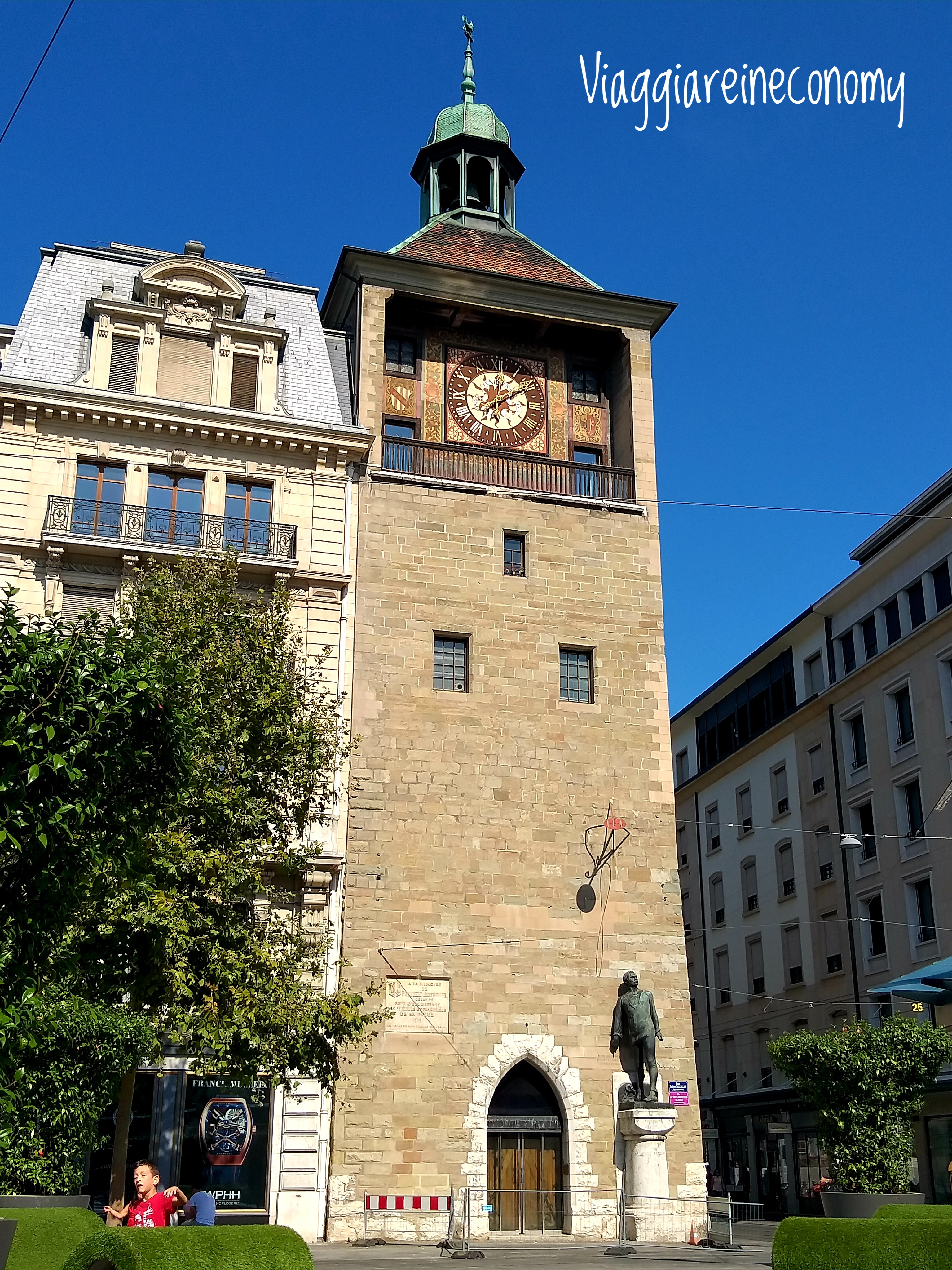 Cosa vedere e dove trovarlo: – Basilique Notre Dame (Place de Cornavín); – Statua L’Immigré, Hotel des Postes (Rue di Mont Blanc); – Pont du Mont Blanc; – Mausolée Brunswick, Brunswick Lions, Balades Thèâtralisées (Square des Alpes); – Monumento a l’Imperatrice Sissi (Quai di Mont Blanc); – Statua Rousseau (Ile Rousseau); – Monument National, Orologio del Fiore (Jardin Anglais); – Place du Port; – Tour du Mulard (Rue du Rhone); – Place de la Fusterie; – Tour de l’Ile (Rue de la Tour de l’Ile); – Sinagoga Beth Yaakov (Place de la Synagogue); – Grand Théâtre de Genève (Place de Nueve); – Nymphe de la Fontaine, Monumento al Mostro Frankenstein (Boulevard Georges Favon); – Plainpalais; – Muro dei Riformatori (Promenade des Bastions); – Ancien Arsenal (Rue du Soleil Levant); – Cattedrale di Ginevra (Place Bourg de Four); – Église Russe (Rue Francois le Fort); – Broken Chair, Palazzo ONU (Place des Nations); – Cloche de Sinagawa, Ariana, Statua Gandhi (all’interno del parco in Avenue de la Paix); – Rue de la Confederation; – Victoria Hall (Rue du Général Dufour).