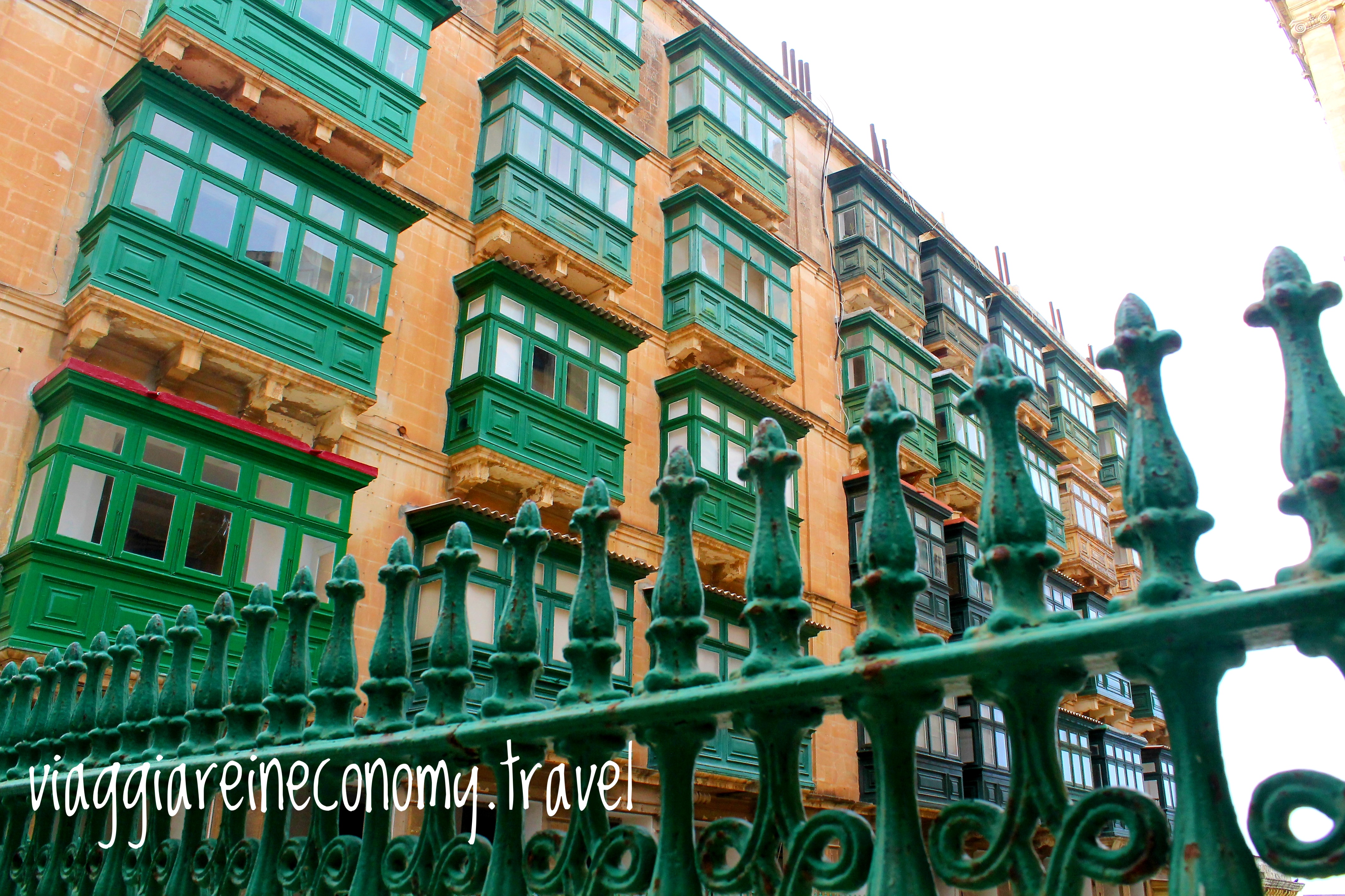 Una delle peculiarità che certamente non passa inosservata agli occhi del turista sono i popolari balconi maltesi. Sono interamente chiusi e colorati con tinte sgargianti quasi a spezzare la monotonia dei palazzi color sabbia. Anche questa caratteristica architettonica ha fatto sì che La Valletta fosse iscritta tra il Patrimonio Mondiale dell’Unesco.