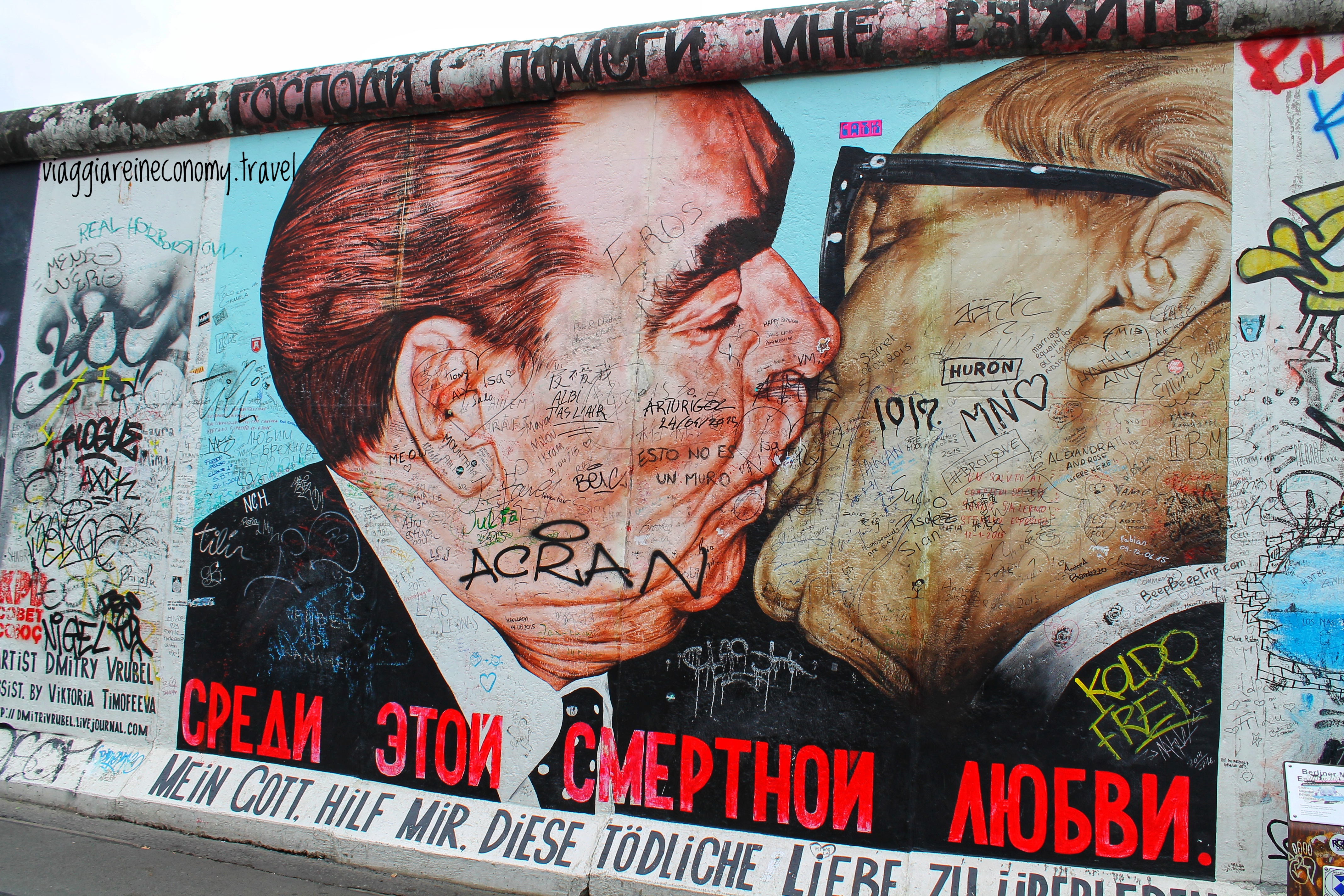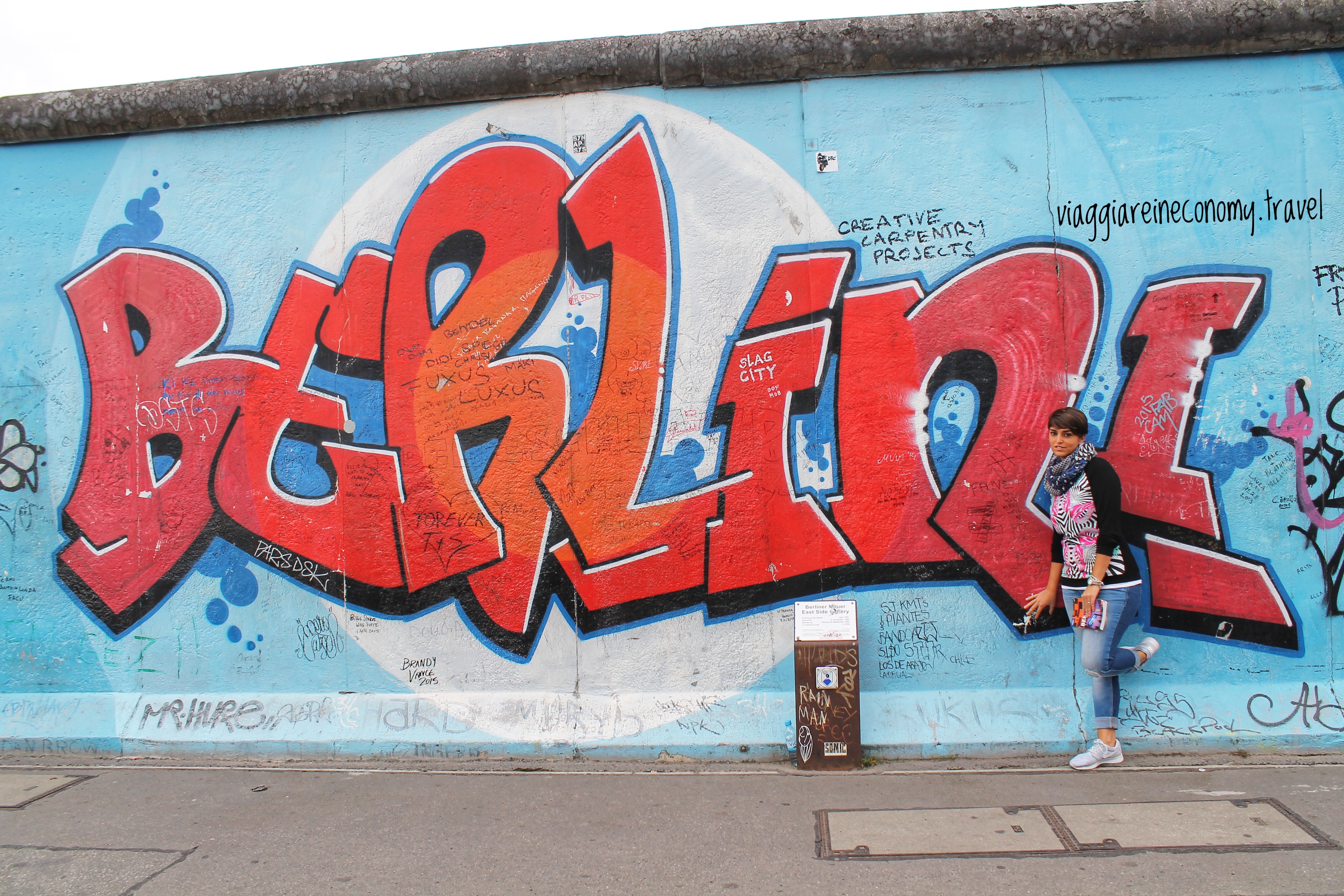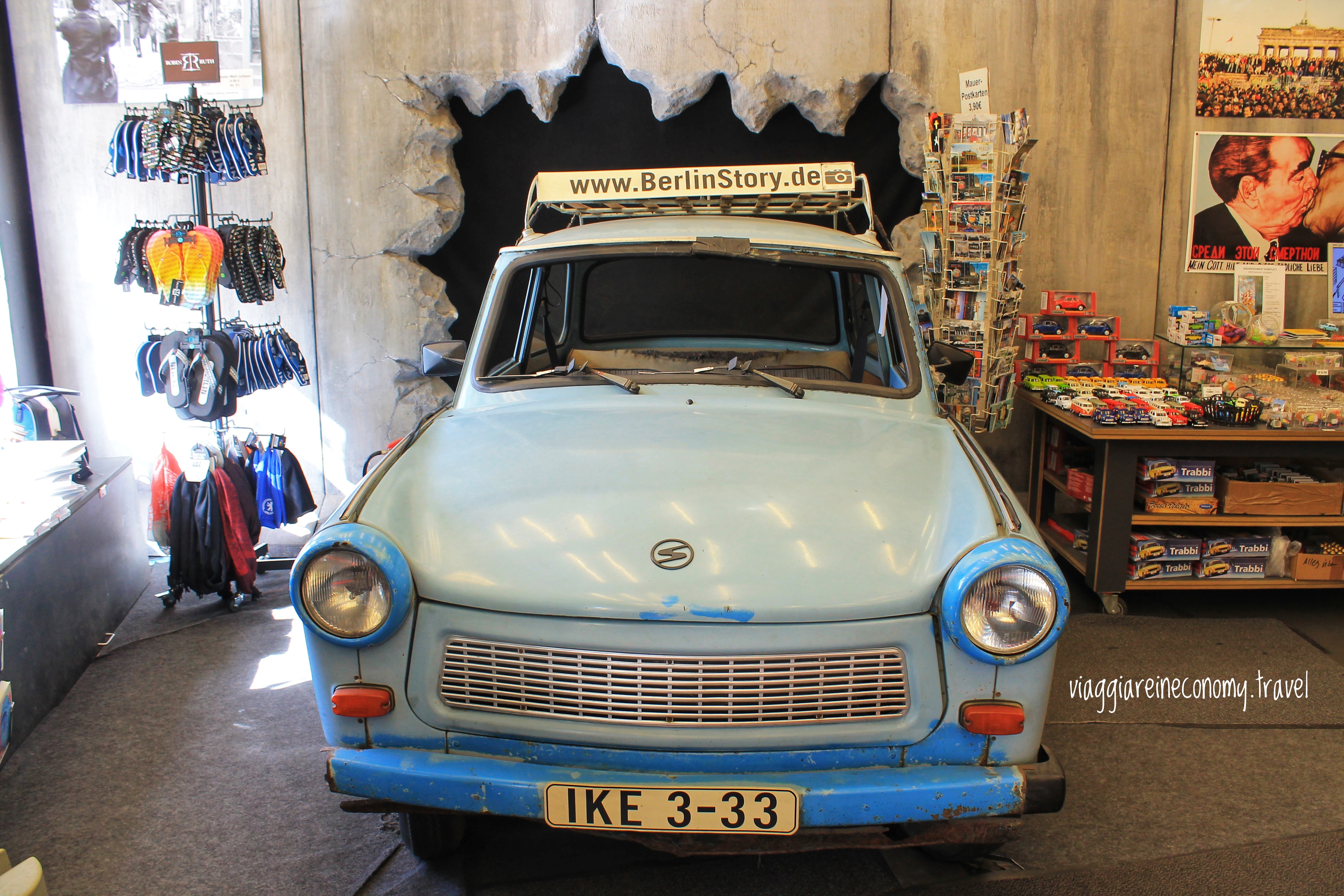 Come tutti sanno la Germania uscì sconfitta dalla Seconda Guerra Mondiale e questo determinò la divisione del paese in due stati diversi: a ovest nacque la Repubblica Federale Tedesca sotto l’influenza di Stati Uniti, Gran Bretagna e Francia; a est invece si formò la Repubblica Democratica sotto il controllo dell’Unione Sovietica. Berlino si trovava in quest’ultimo stato e vista la sua importanza si decise in seguito la sua frammentazione con le stesse zone d’influenza dell’intera Germania. Nel 1961 su iniziativa della Germania dell’est venne edificato il Muro di Berlino. Rappresentò per quasi trent’anni il simbolo concreto della “Cortina di Ferro”, ossia quella linea di confine immaginaria che divideva in due l’Europa durante il periodo della Guerra Fredda. I filosovietici sostennero che la costruzione del muro doveva servire come protezione antifascista, ma in realtà era per bloccare l’esodo dei cittadini di Berlino est verso ovest. Inizialmente si trattava solo di una barriera di filo spinato, ma progressivamente venne costruito un muro che circondava Berlino ovest riducendola ad un isola rinchiusa tra i territori sovietici. Era lungo 155 km e nel 1962 venne ampliato con un secondo muro costruito all’interno per rendere più difficile la fuga da una parte all’altra: fu creata così la “Striscia della Morte”. Negli anni in cui il muro era ancora in piedi si sono contate più di 200 vittime che hanno perso la vita nel tentativo di oltrepassare il confine. Invece furono molto di più quelle che riuscirono a farcela e a volte con modi molto ingegnosi: tra i vari tunnel costruiti ce ne fu uno la cui entrata era situata nei pressi del cimitero di Pankow e le persone, facendo finta di andare ad un funerale, sparivano dietro una tomba prestabilita. Era molto più semplice per turisti e stranieri attraversare il confine. Infatti dopo la costruzione del muro fu istituito un importante posto di blocco denominato Checkpoint Charlie situato sulla Friedrichstrasse. Il nome deriva dall’alfabeto fonetico NATO essendo questo il posto di controllo C. Dopo la riunificazione la cabina venne rimossa e collocata all’interno dell’Alliierten Museum. Quella che si può ammirare oggi in strada è una fedele ricostruzione del 2000.